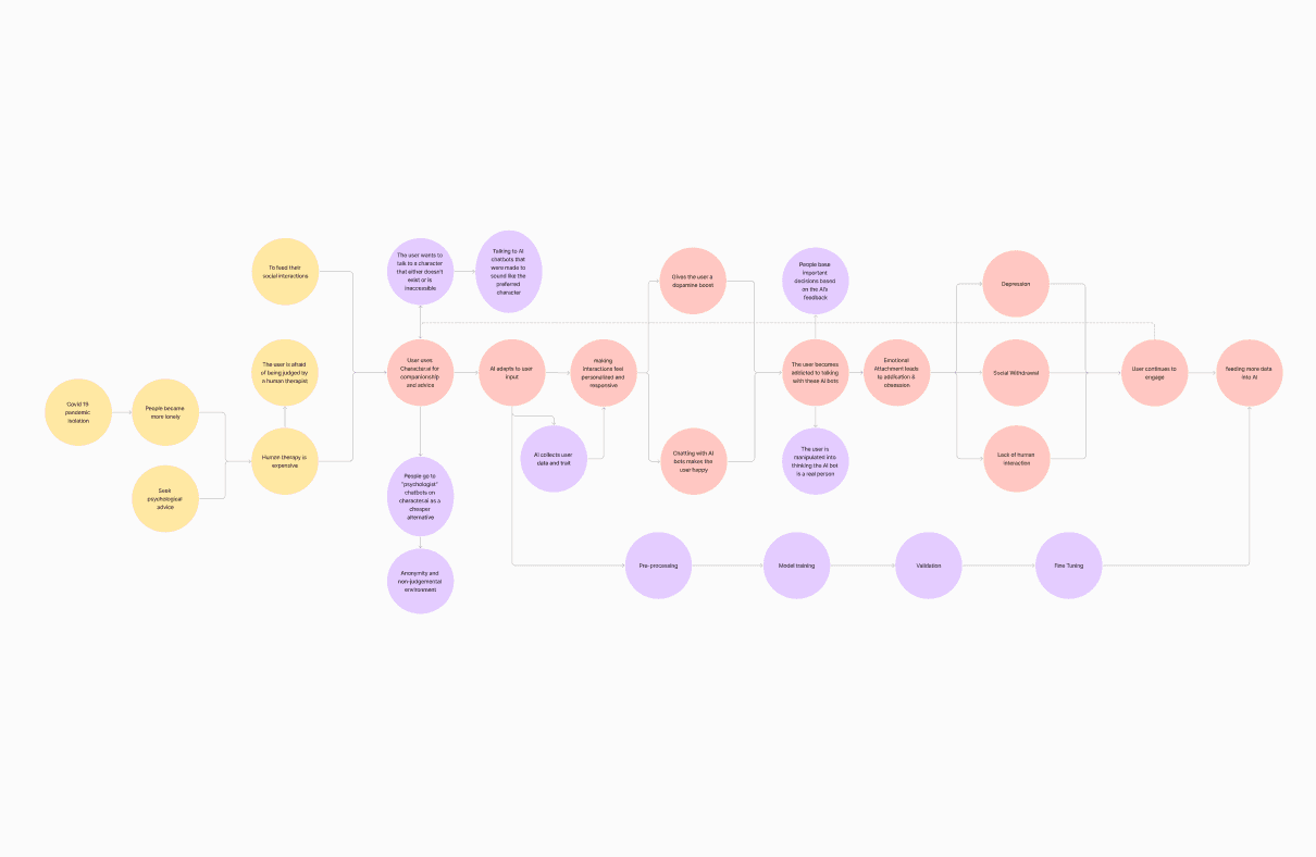 Through extensive research and multiple rounds of design iterations, our team successfully crafted a product that raises awareness about the link between AI chatbots and loneliness, as more people turn to digital interactions. While chatbots offer temporary companionship, they may worsen feelings of isolation, limiting genuine human connections. Recognizing this effect helps encourage healthier use of AI and better emotional well-being. While the tight deadline rushed the decision-making process, leading to overlooked details, the project provided our team with a rewarding experience that fosters continuous learning.